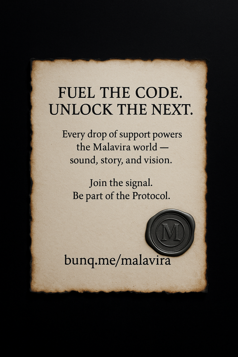 Fuel the Code. Unlock the Next. Every drop of support powers the Malavira world—sound, story, and vision. Tap the image to join the signal. Be part of the Protocol. 🔮 Click the image for the link